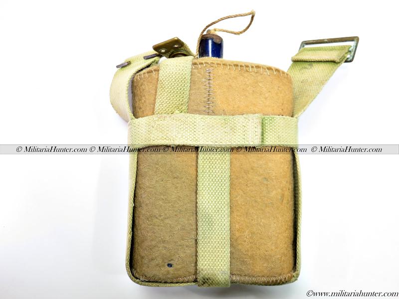 ww1 British & Commonwealth canteen, blue enameled, with its felt cover and web harness pattern 1908.